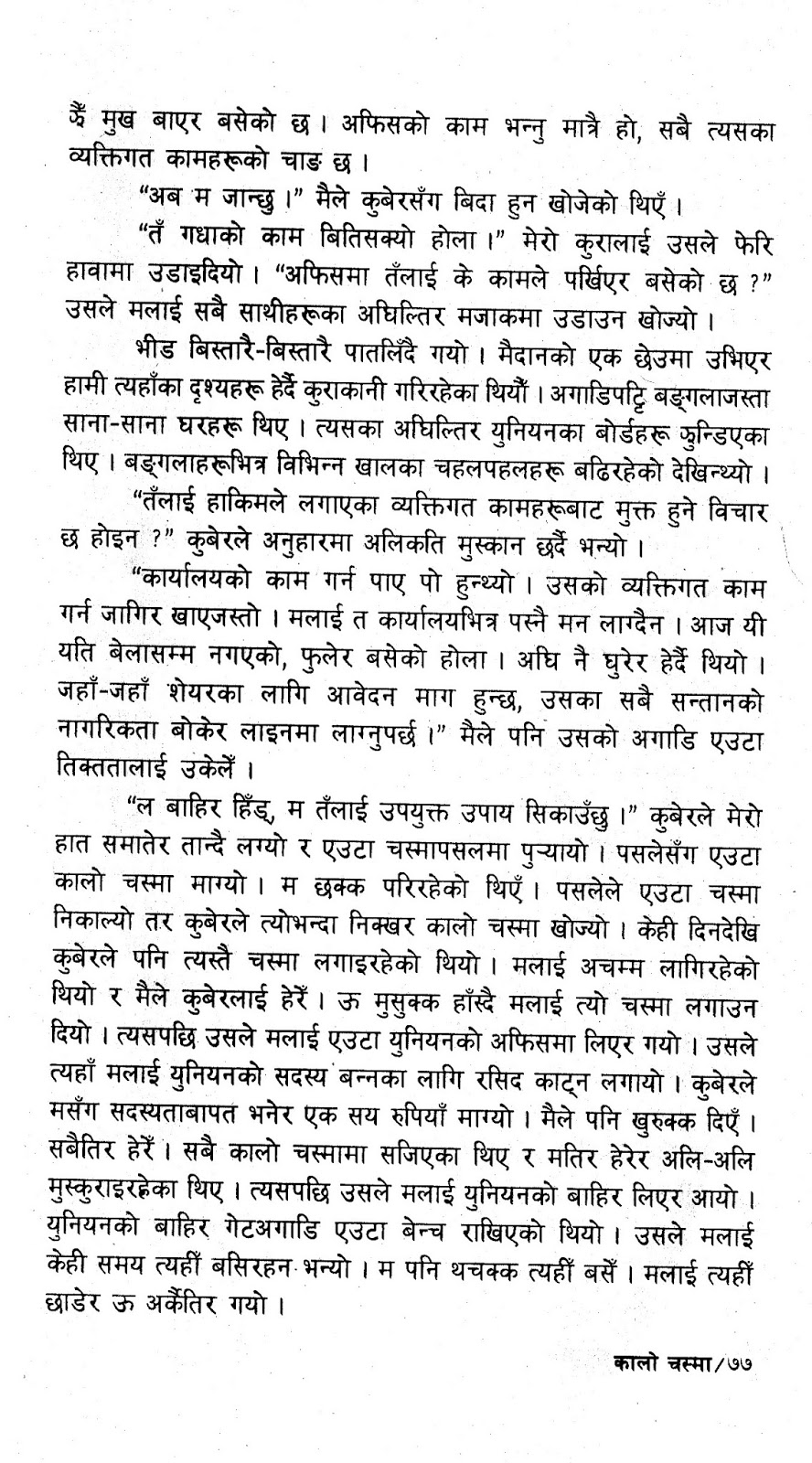 पुतलीसडककको बारमा उभिएर मैले निकैबेरसम्म उसलाई हेरिरहें । बी.ए. पास गरेर अधिकृत भइसक्दा पनि ऊ परिवर्तन भएको रहेनछ । त्यसपछि उसलाई फेरि भेट्ने योजना मैले त्यागिदिएँ ।